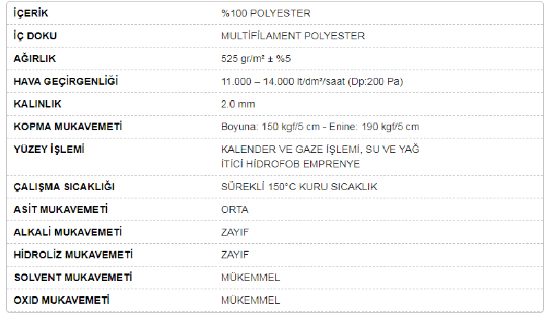 Hidrofob Emprenye işlemi yapılarak su ve yağ itici özellikleri bulunan polyester filtre torbasını, tozun su ve yağlı şekilde geldiği sektörlerde rahatlıkla kullanabilirsiniz. Bir tarafı gazeli olan torbalar tozun yüzeyden rahatlıkla kayarak torbaya tutunmasını engellemektedir.